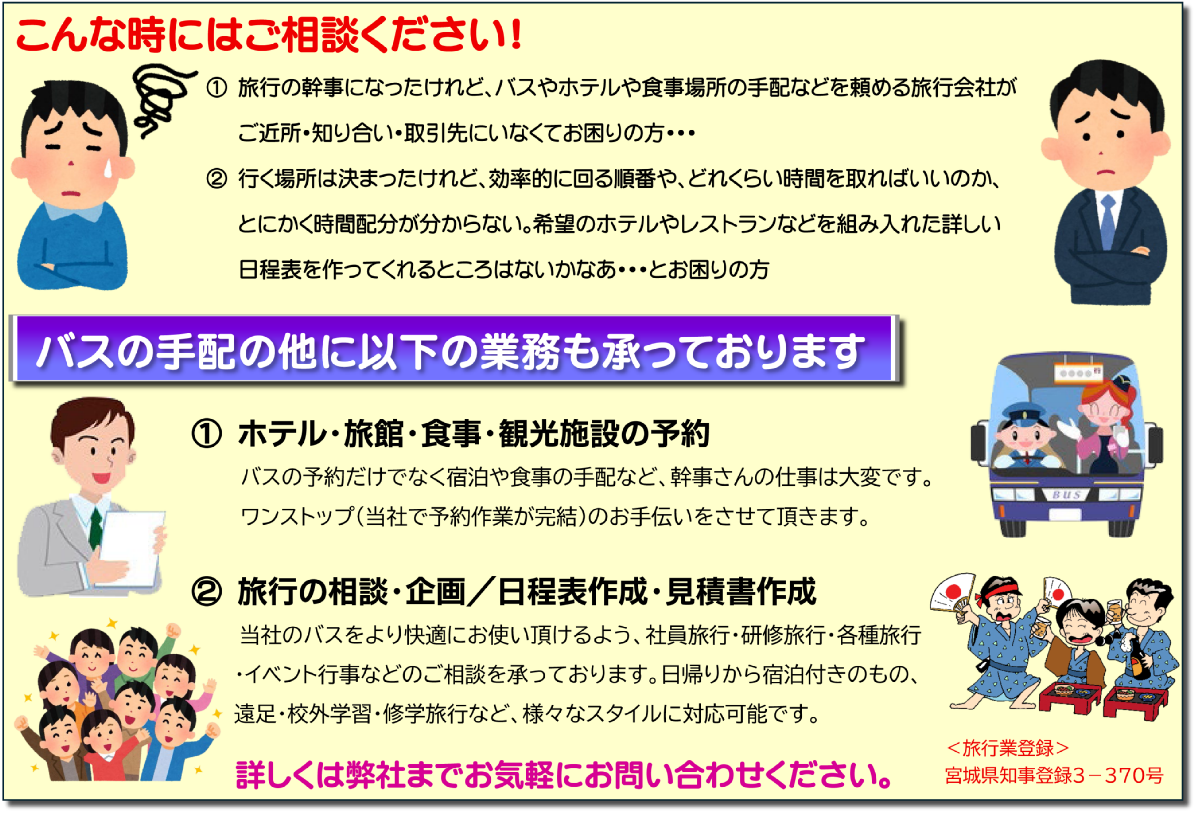 宮城県/東北エリアの貸切バスは東和観光バスにお任せください
